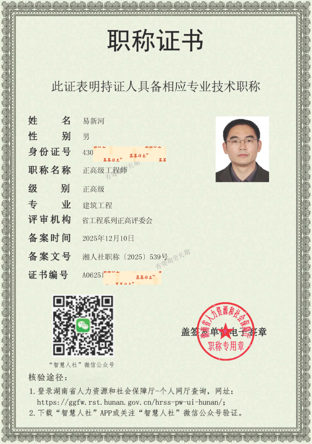 近日,湖南省工信厅公布了2025年度工程系列正高级专业技术职称评审通过人员名单,易新河董事长赫然在列,从近千名参评者中脱颖而出,一次性取得正高级工程师职称。